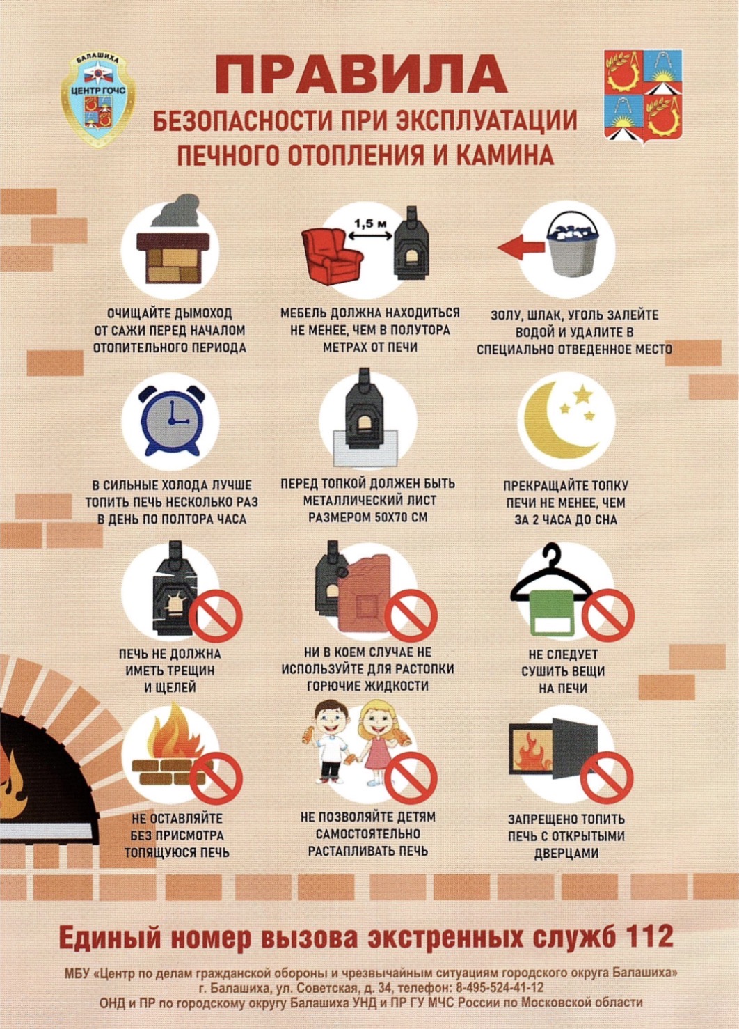 Категорически запрещается: оставлять топящиеся печи без присмотра или поручать их детям, хранить топливо и горючие материалы рядом с ними, использовать для розжига бензин, керосин и другие легковоспламеняющиеся жидкости. Нельзя перекаливать печи, топить их с открытой дверцей, сушить на них вещи или дрова, а также использовать вентиляционные и газовые каналы как дымоходы.