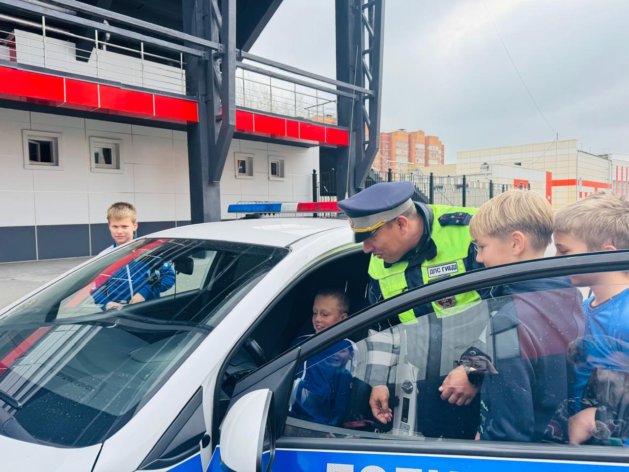 Для воспитанников спортивной секции по футболу спортивной школы «Орион» городского округа Балашиха сотрудники Госавтоинспекции провели занятие по безопасности дорожного движения в рамках социального раунда «Засветись».