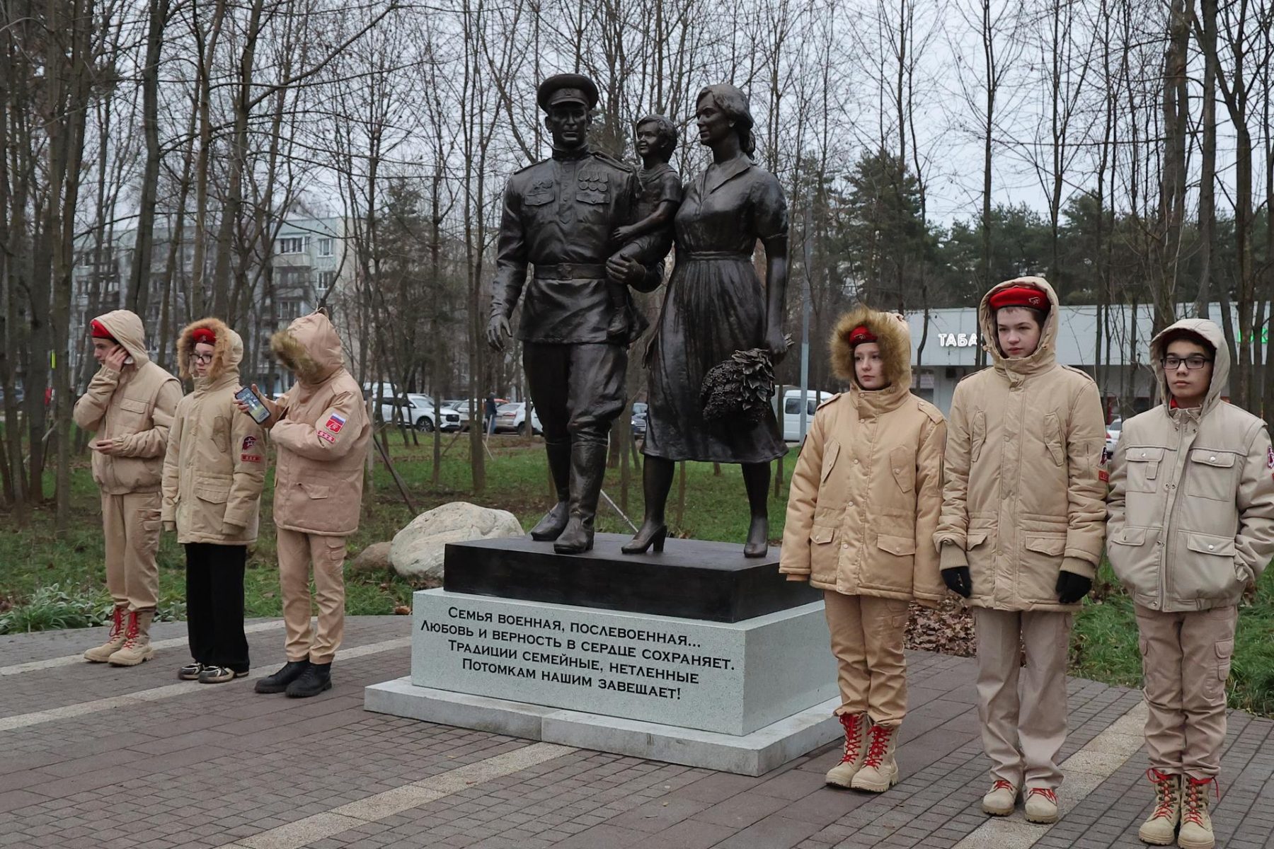 Скульптурную композицию «Послевоенная офицерская семья» открыли в сквере Семьи, любви и верности в микрорайоне Заря 9 декабря. В торжественной церемонии, приуроченной ко Дню Героев Отечества участвовали депутат Мособлдумы Тарас Ефимов, заместитель главы Балашихи Михаил Объедков, председатель местного Совета депутатов, руководитель фракции «Единой России» Геннадий Попов, Герой России, руководитель местного отделения Ассоциации ветеранов СВО Иван Клещерёв, председатель Объединённого Совета ветеранской организации микрорайона Заря, полковник в отставке Алексей Дедов, генерал-лейтенант в отставке Юрий Чубенко, местные жители.