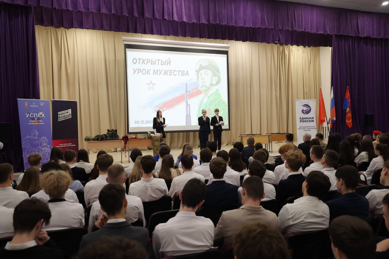 Урок мужества, посвященный Дню Героев Отечества, прошел в гимназии № 1 имени Героя РФ А.В. Баландина. В нем приняли участие депутат Мособлдумы Тарас Ефимов, члены фракции «Единая Россия» Анна Скоропупова и Иван Клещерев, ветераны специальной военной операции, а также молодогвардейцы, юнармейцы и школьники.