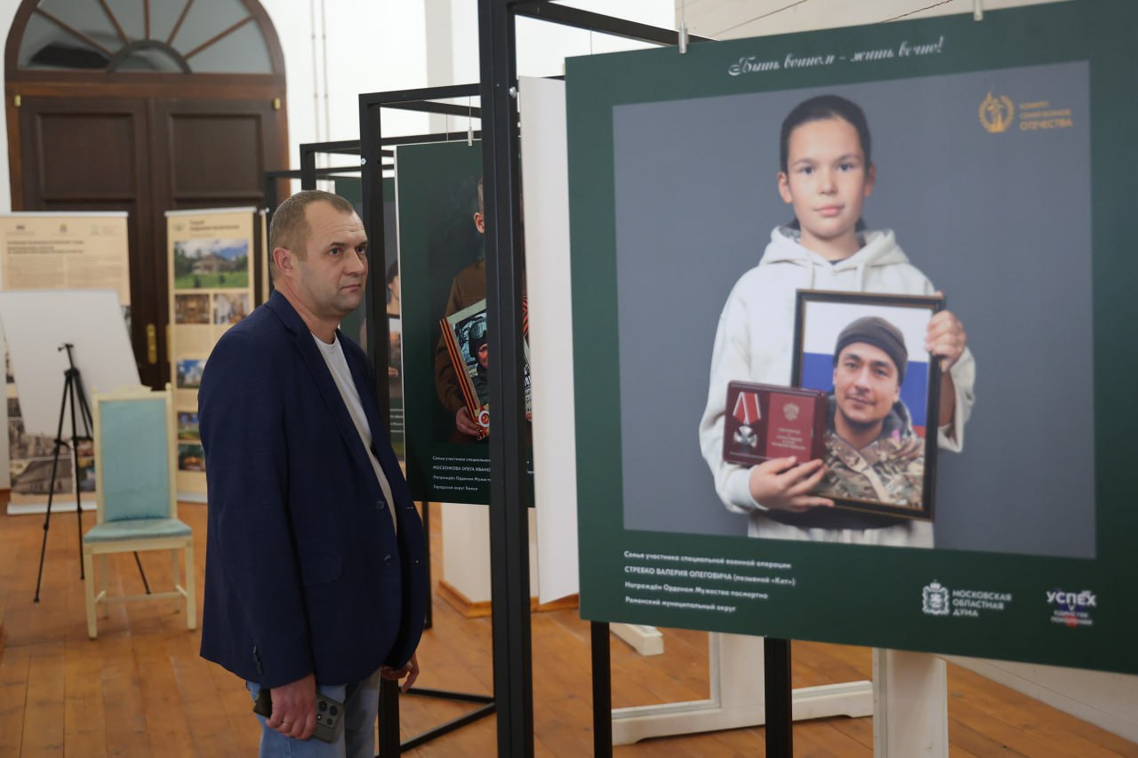 На выставке представлены фотографии, на которых изображены родные погибших участников специальной военной операции, держащие в руках их портреты. 23 личные истории семей из шести муниципалитетов Подмосковья, каждая из которых рассказывает о подвиге и вечной памяти.