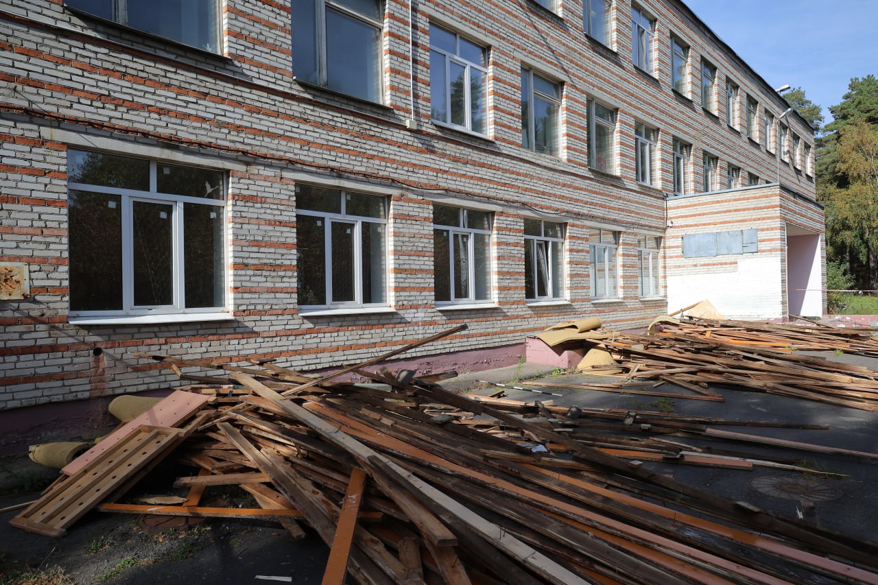 Один из объектов, где уже активно ведутся ремонтные работы, стала школа №18 в деревне Черное. Секретарь местного отделения партии «Единая Россия» Сергей Юров посетил строительную площадку и ознакомился с ходом демонтажных работ внутри здания и на кровле. На объекте задействовано более 20 специалистов.