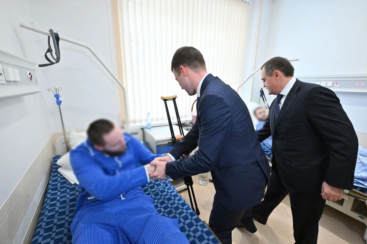 После официальной части гости пообщались с бойцами, которые сейчас проходят лечение и реабилитацию. Военнослужащим передали продуктовые наборы и подарки.