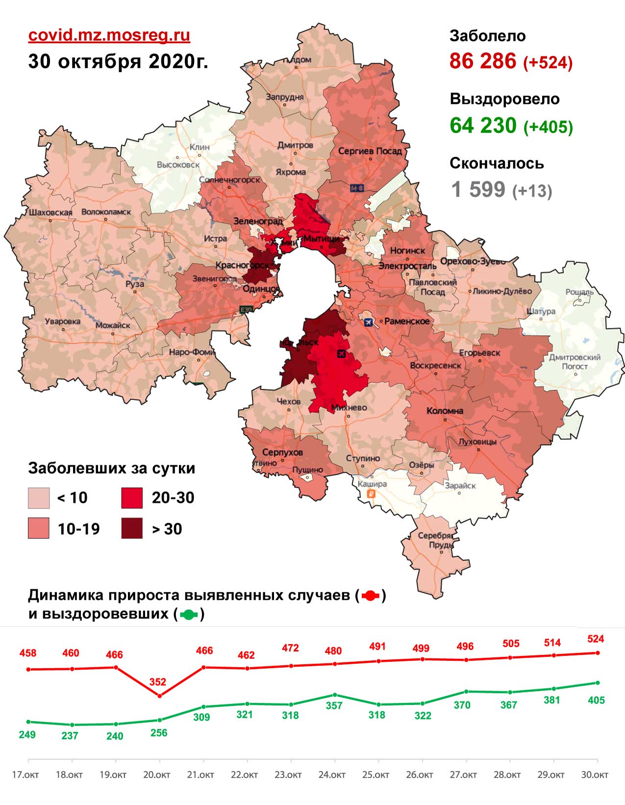 Всего на данный момент в Московской области выявлено 86 286 случаев заболевания коронавирусной инфекцией. Скончались 1 599 человек. Выздоровели и выписались 64 230 человек.