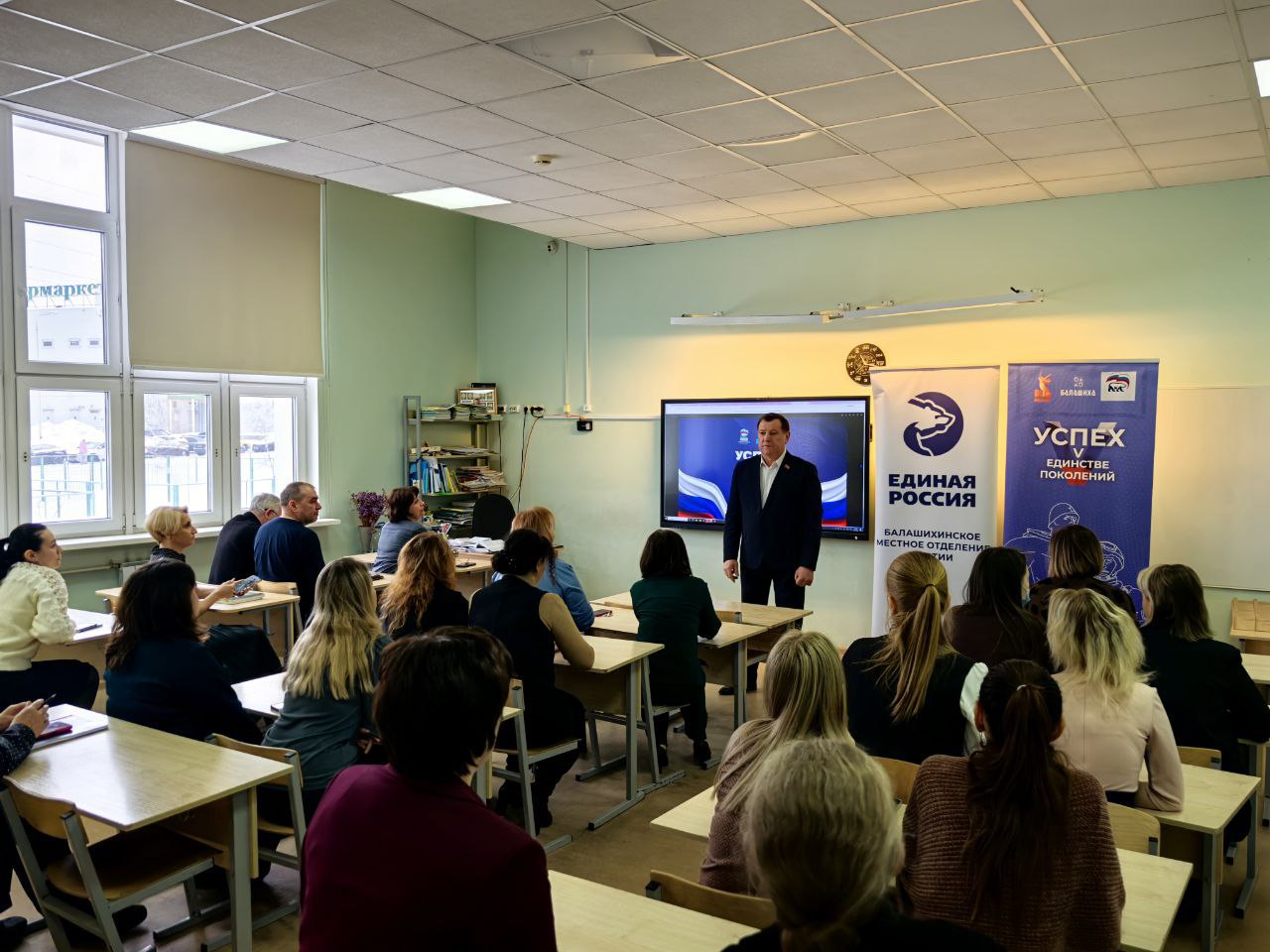 Особую атмосферу создали рассказ учителя истории Анны Свешниковой и кадры хроники. Тему преемственности развил Сергей Попов, член «Боевого Братства» и фонда поддержки ветеранов боевых действий управления специальных операций.