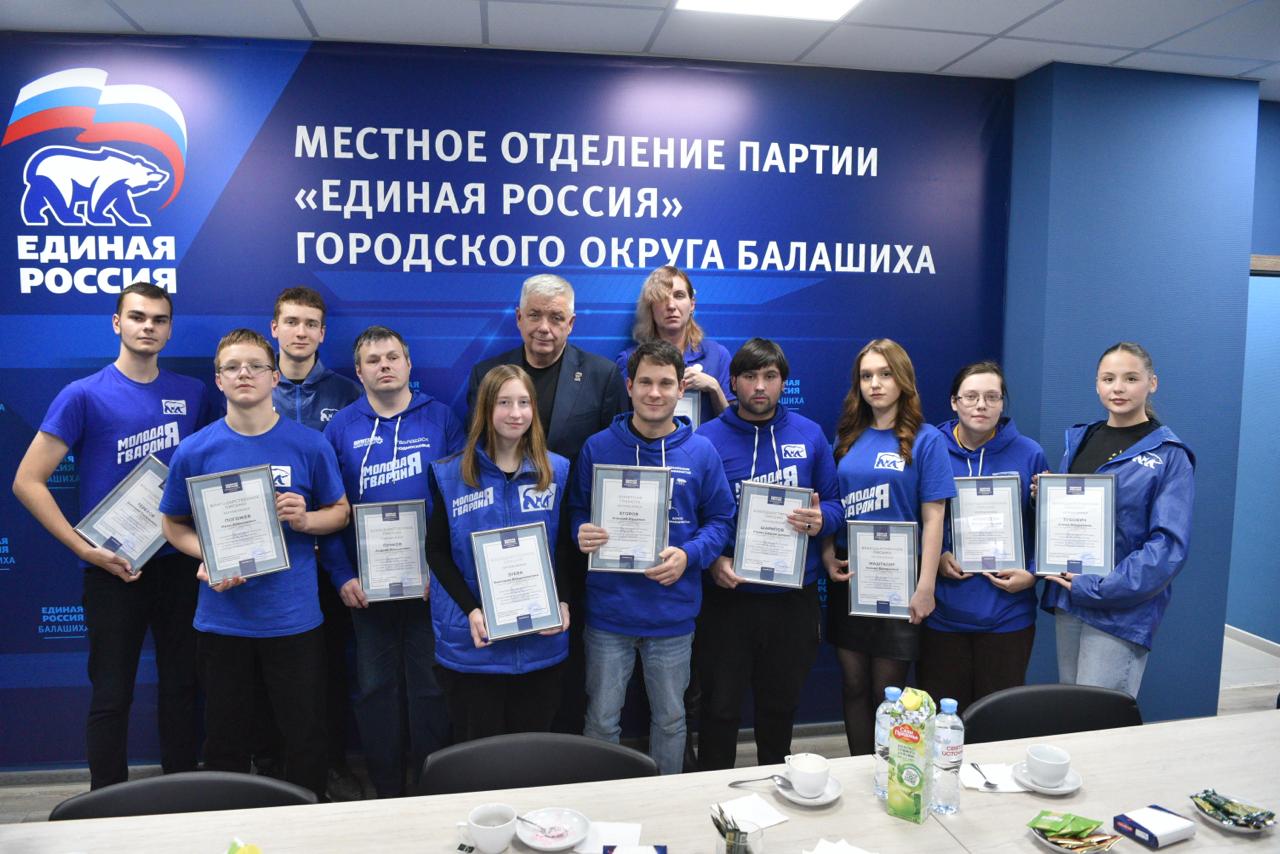Одиннадцать активистов «Молодой Гвардии Единой России» получили благодарности от Председателя Мособлдумы, секретаря Московского областного регионального отделения «Единой России» Игоря Брынцалова 10 ноября в Балашихе. На кануне 20-летия движения активистов поздравил депутат Мособлдумы Тарас Ефимов.
