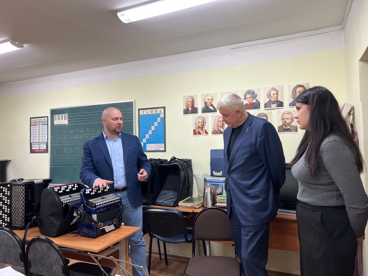 Депутат Московской областной Думы Тарас Ефимов посетил учреждение и вместе с директором школы Максимом Бологаном осмотрел музыкальные классы и новые инструменты, приобретенные для юных дарований. Всего в учебное заведение было поставлено 10 современных пианино и 6 баянов, что позволит существенно повысить качество образовательного процесса.