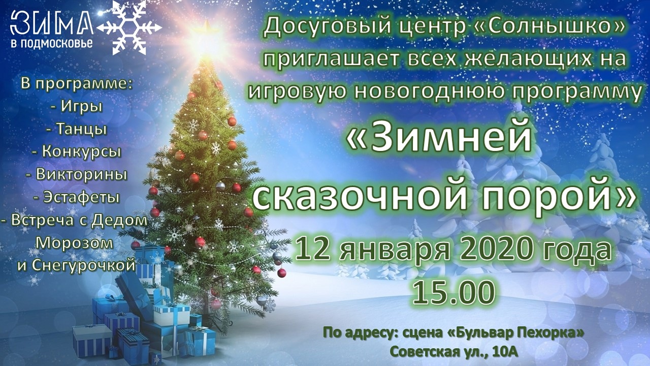 Новогоднюю игровую программу «Зимней сказочной порой» проведут в Балашихе 12 января 2020 года.