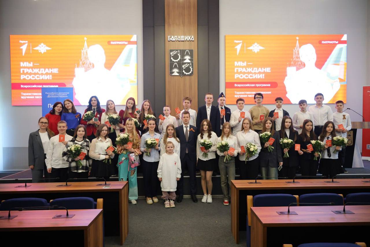 Глава Балашихи, секретарь местного отделения «Единой России» Сергей Юров вручил 29 школьникам их первые паспорта граждан России и значки «Движения первых». Торжественная церемония, которую провели в администрации города 5 мая, стала частью акции «Мы – граждане России!».
