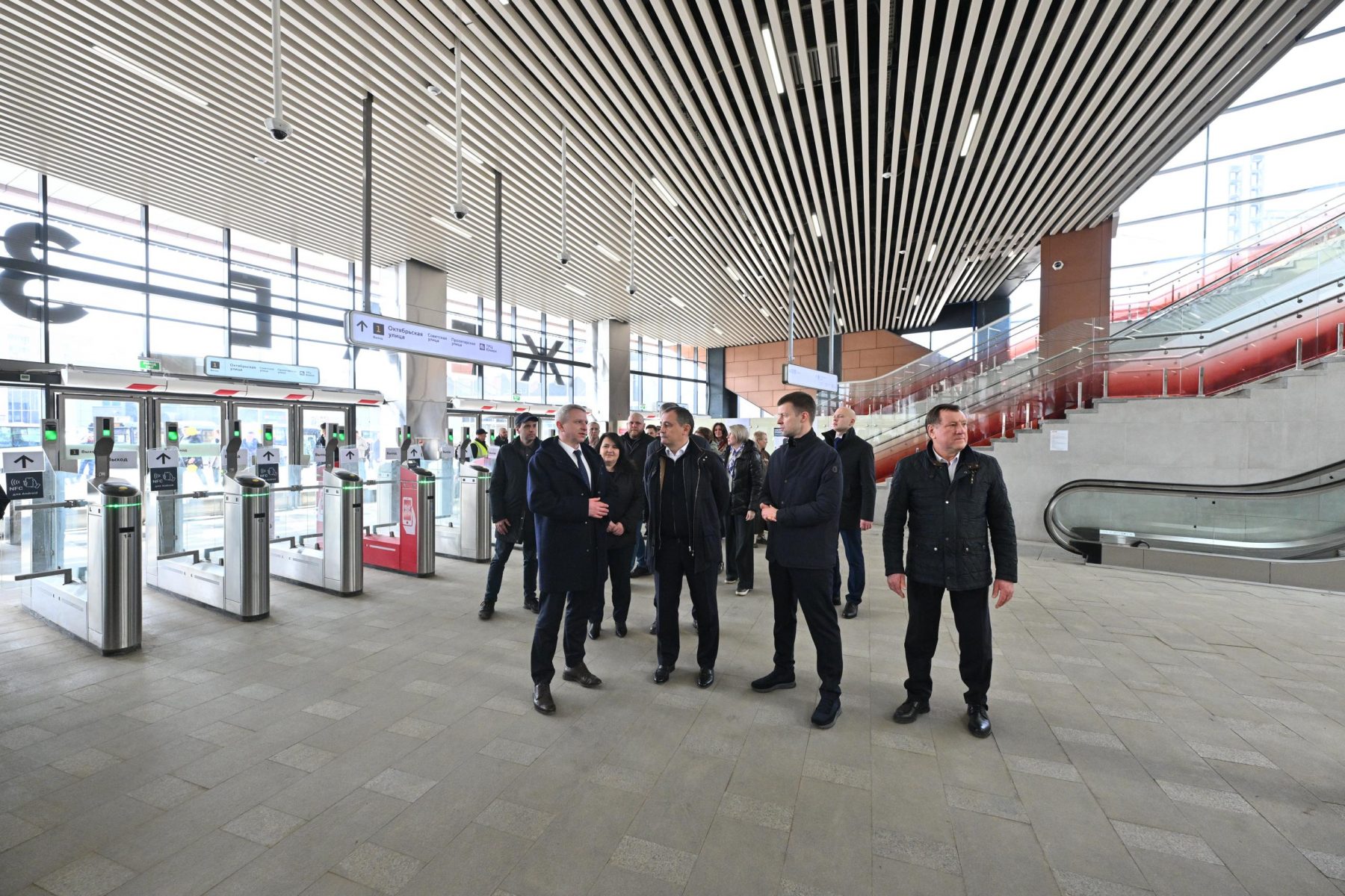 «Уже введены в эксплуатацию три пассажирские платформы. Ведётся строительство четвёртой платформы и северного вестибюля. Станцию обслуживает более 1,5 тысячи человек — это дистанции пути, электроснабжения, сигнализации и связи, полноценное депо, персонал станции», — пояснил Павел Петровичев.