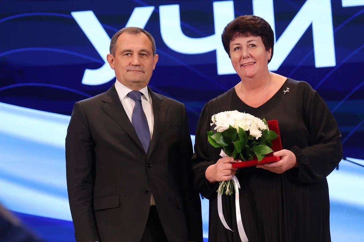 Лучшим учителям и воспитателям также вручили почётные грамоты Министерства просвещения РФ, 13 из них были удостоены звания «Почётный работник сферы образования Российской Федерации». Председатель Совета депутатов Балашихи, руководитель фракции «Единой России» Геннадий Попов вручил благодарственные письма и почётные грамоты 12 педагогам.