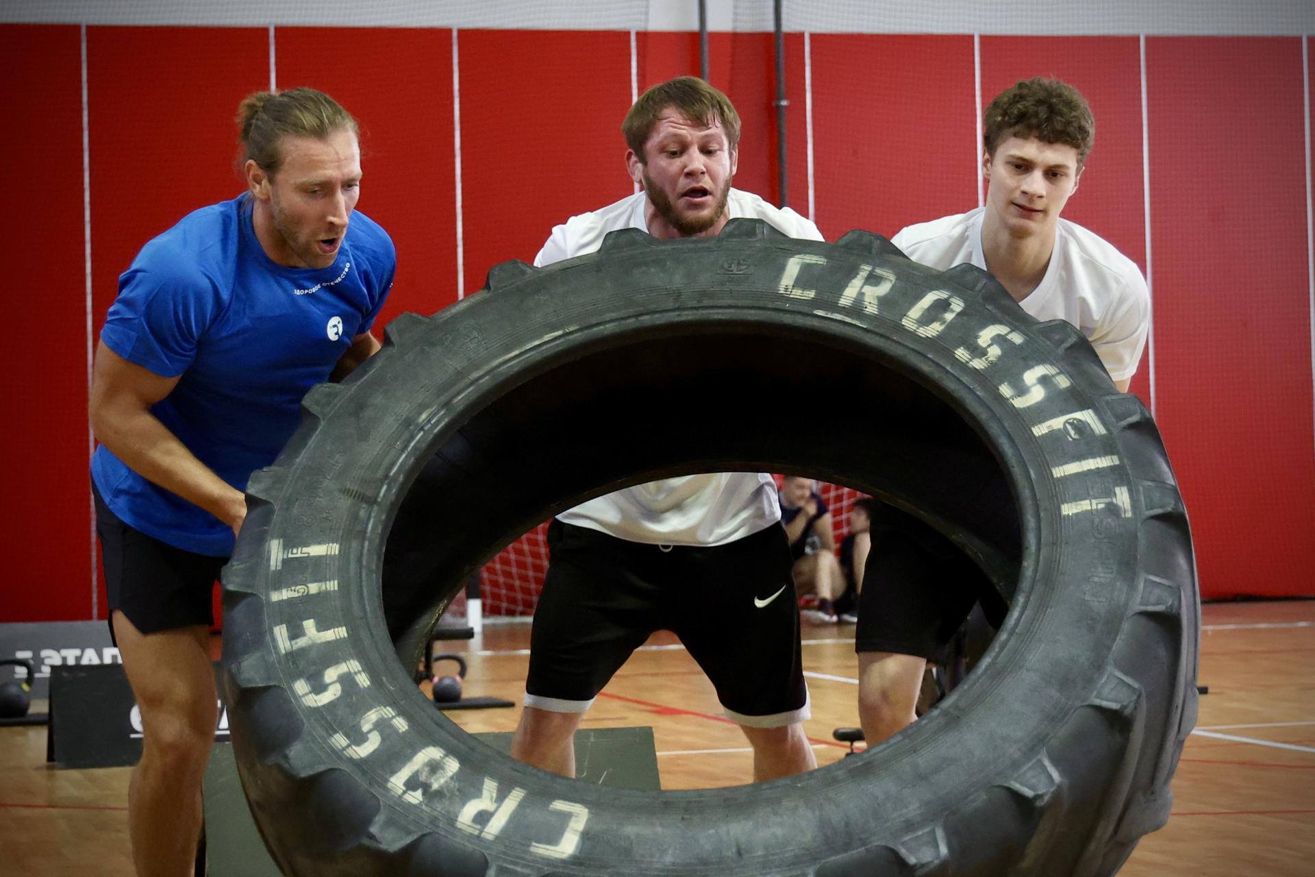 Участниками вместе с амбассадорами проходили все этапы соревнований — приседали и поднимали гантели, прыгали на куб, перетаскивали диски, соревновались на тренажёре, имитирующем академическую греблю, и велотренажере, упражнялись с гирями и кувалдой, перекатывали огромное автомобильное колесо. На каждый этап давалась минута времени, за которую нужно было сделать как можно большее количество упражнений. Результаты физрука и ученика в итоге суммировались.