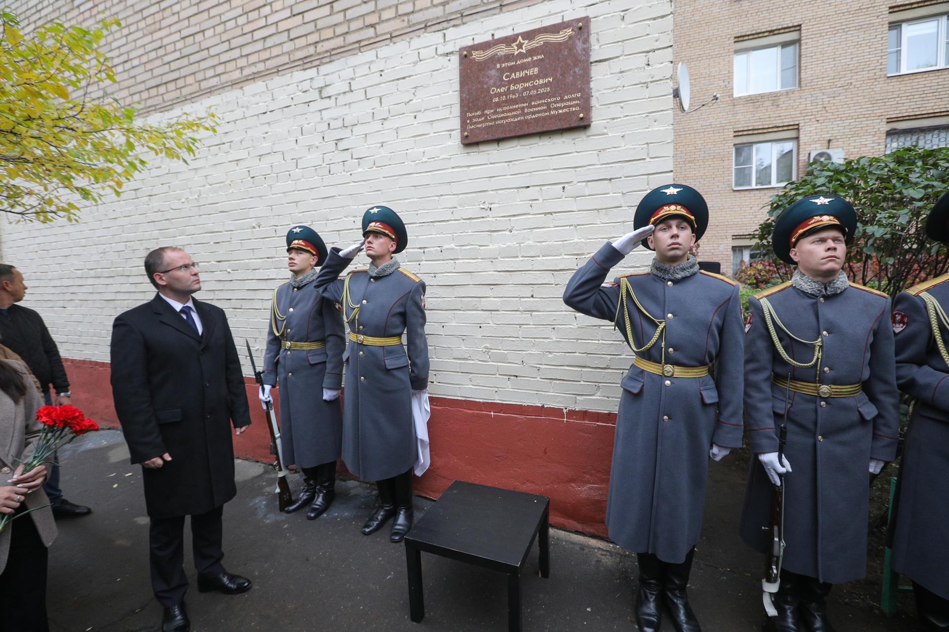Память участника специальной военной операции сержанта Олега Савичева увековечена 8 октября. В торжественной церемонии открытия мемориальной доски участвовали заместитель главы города Дмитрий Варнавский, социальный координатор фонда «Защитники Отечества», советник главы Балашихи Наталья Махонина, близкие героя и жители.