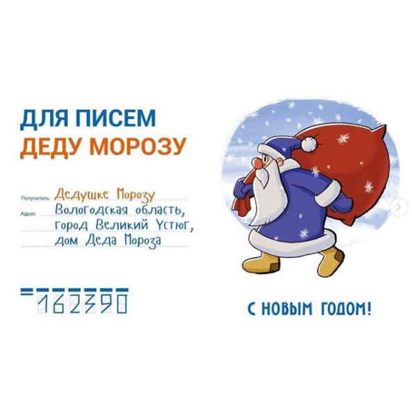 На конверте необходимо указать адресат: 162390, Россия, Вологодская область, город Великий Устюг, «Дом Деда Мороза» и наклеить на него марку.