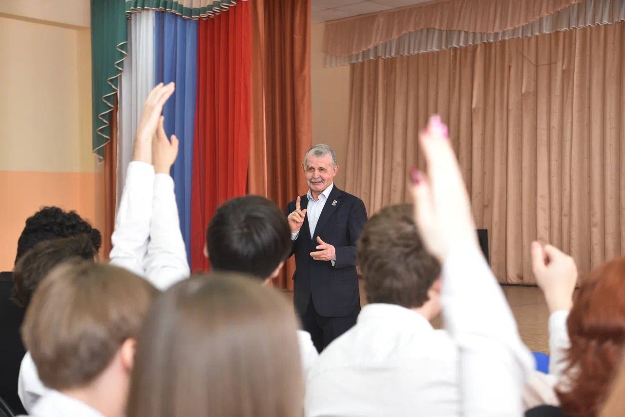 Владимир Шапкин давно и системно работает со школами и у него сложилось несколько постоянных тем для уроков. Первая — «Пять вопросов депутату», где дети задают вопросы, с которыми могут столкнуться в будущем, и некоторые из них закладывались в законодательство. Вторая серия уроков была посвящена экологии — экологическому образованию, просвещению и формированию экологической культуры. Третье направление — СВО и тема защиты Родины с участием самих бойцов. Также депутат проводил занятия по финансовой грамотности — от личного бюджета до государственного.