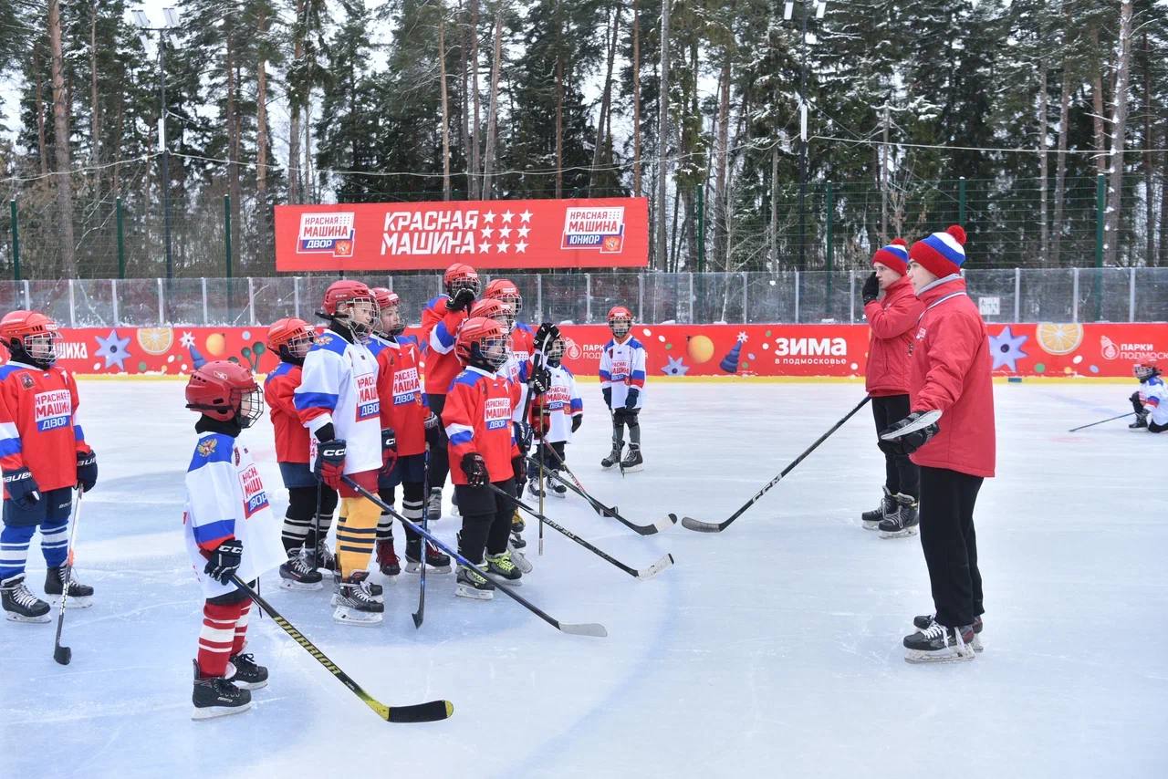«Красная машина ДВОР» — это серия учебно-тренировочных занятий по хоккею, которая будет проходить на дворовых коробках и на катках в парках Московской области под руководством профессиональных наставников. Занятия проходят по национальной программы «Красная машина», утверждённой Министерством спорта РФ. Проект проходит при поддержке «Движения Первых». Дети от 5 до 14 лет получают здесь возможность освоить базовые навыки катания на коньках, научиться владеть клюшкой и шайбой, а главное — почувствовать азарт и радость командной игры.