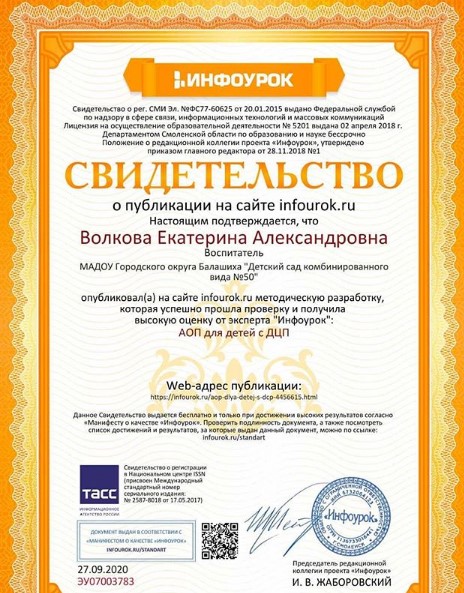 «Адаптированная образовательная программа для детей с детским церебральным паралиочм» опубликована на сайте «Инфоурок».