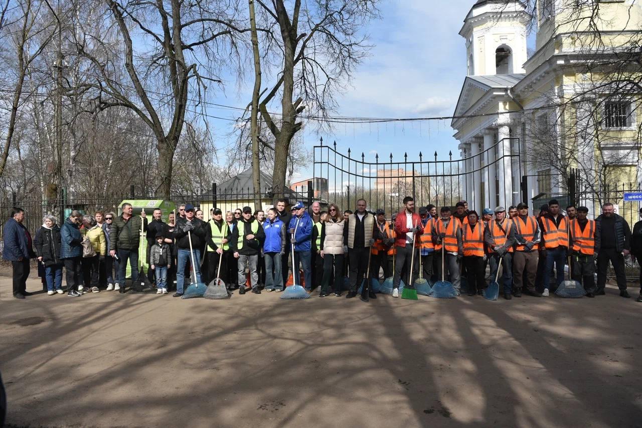 Жители Балашихи вышли на уборку территории рядом с Преображенским храмом